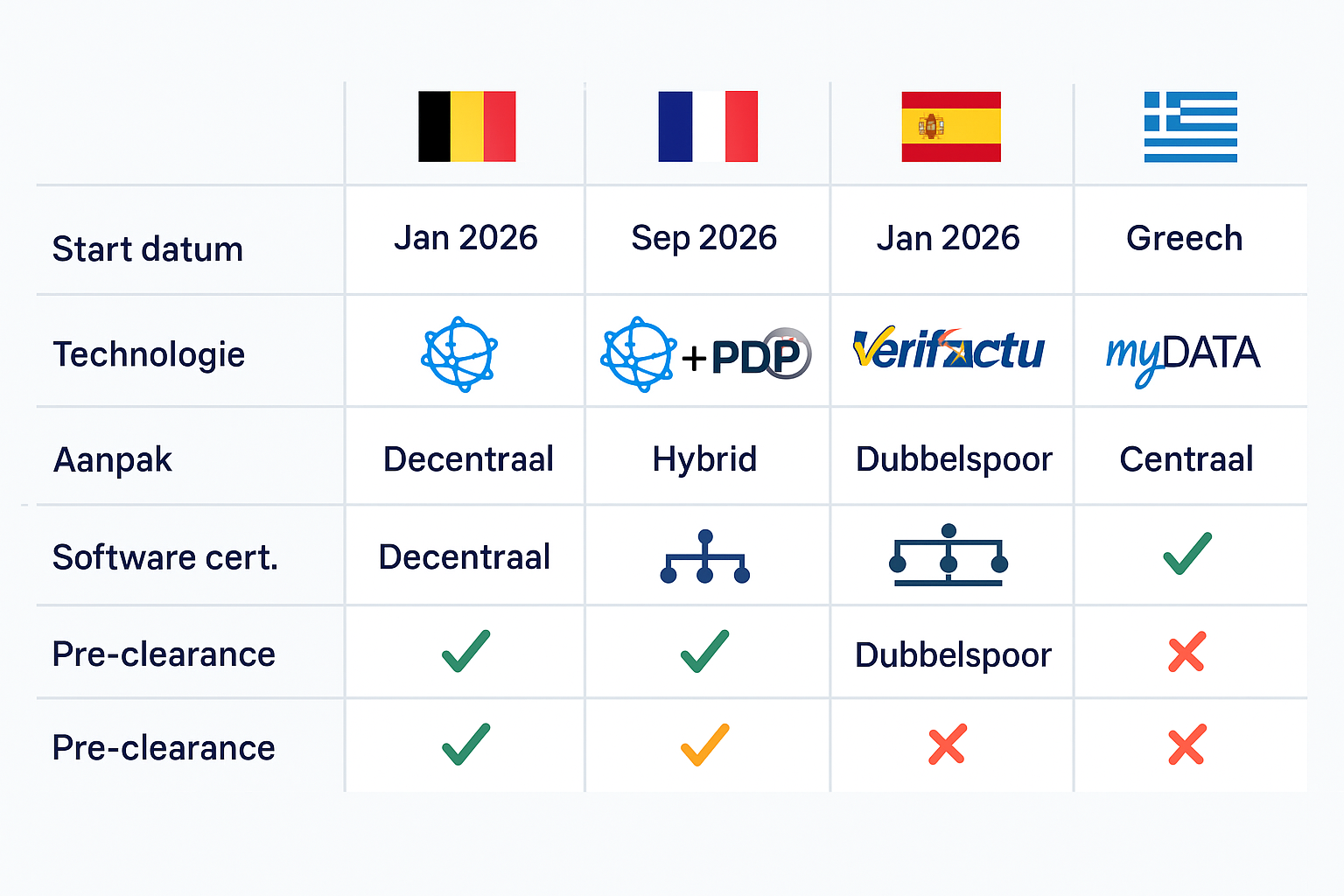 Spanje is niet het laatste land dat e-facturatie verplicht stelt. Met België (januari 2026), Frankrijk (september 2026), Slovenië (januari 2027), Griekenland (februari 2026) en de EU-brede ViDA-vereisten (2030) wordt e-facturatie de nieuwe standaard in Europa.