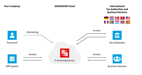 Via de cloud-services van SEEBURGER kunnen inkomende en uitgaande elektronische facturen automatisch worden uitgewisseld, getransformeerd naar landspecificieke formaten en verzonden via netwerken zoals PEPPOL. Het aanbod omvat onder andere: